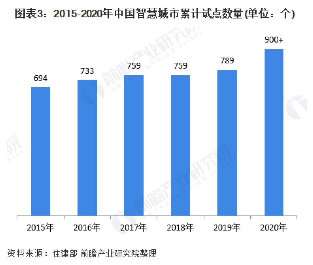 從國(guó)家開(kāi)始推進(jìn)智慧城市建設(shè)以來(lái),住建部發(fā)布三批智慧城市試點(diǎn)名單。截止目前,住建部公布的智慧城市試點(diǎn)數(shù)量已經(jīng)達(dá)到290個(gè)。另外,各級(jí)地方政府和“十三五”規(guī)劃的補(bǔ)充,截止2019年,我國(guó)超過(guò)700個(gè)城市正在規(guī)劃和建設(shè)智慧城市。