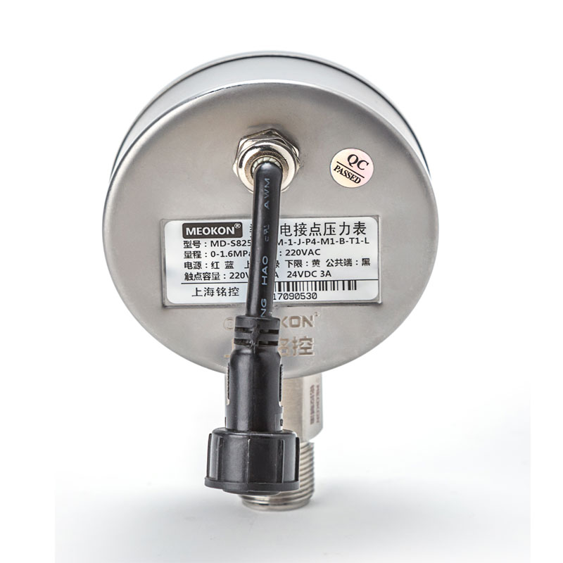 直徑80mm,徑向安裝,304不銹鋼外殼。 內(nèi)置繼電器,接線方法同電接點(diǎn)壓力表,多種輔助控制功能。