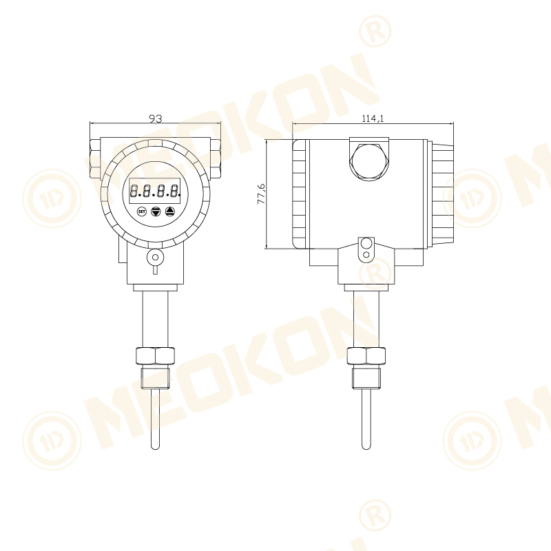 本產品可以測量水、油、空氣等對不銹鋼無腐蝕的介質,配置進口的高精度PT100作為測量溫度的元件,溫度探頭接觸插入測量介質,電路進行0-60℃使用環(huán)境溫度補償。