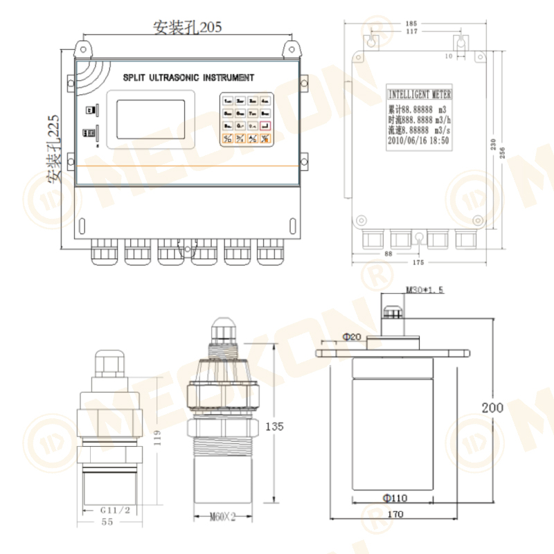 | 主要特點(diǎn):分體式安裝 多種輸出方式分體式超聲波液位計(jì) | ||